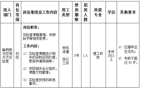 紫金山天文台面向国内外公开招用科研助理岗位人员,本次招用的具体岗位需求信息请见下表: